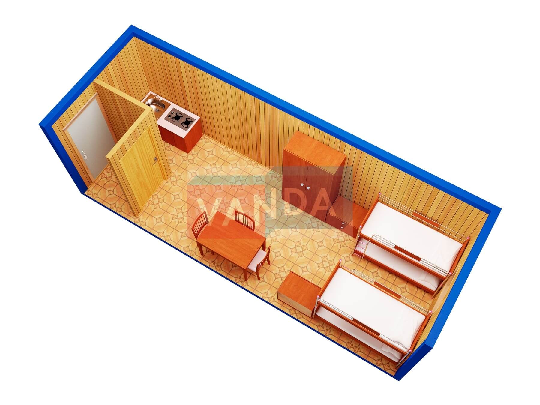 Строительная бытовка со сборкой на месте №4 (вариант 3) 5.8x2.2 12.76 Вагонка деревянная Имитация бруса 140 500 р. Уточняйте у менеджера